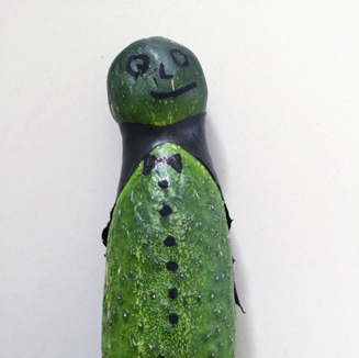 ürfen wir vorstellen: Das ist „Gentle-Gurke“. Er wuchs durch die Folie, was ihm diese einzigartigen Rundungen verlieh. Mit Gesicht und Knöpfen setzten wir ihm liebevoll dann noch ein paar Akzente.